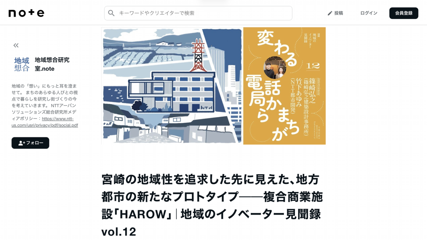 NTTアーバンソリューションズ総合研究所/地域想合研究所.noteの「地域イノベーター見聞録」にインタビュー形式として掲載されています。